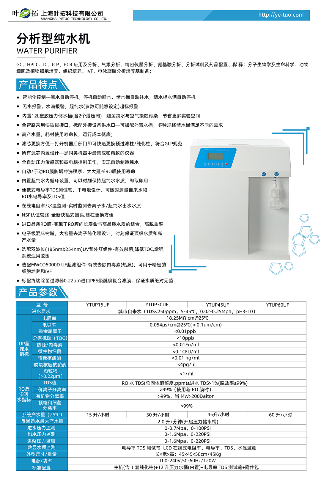 上海葉拓 YTUP60SUF 分析型純水機