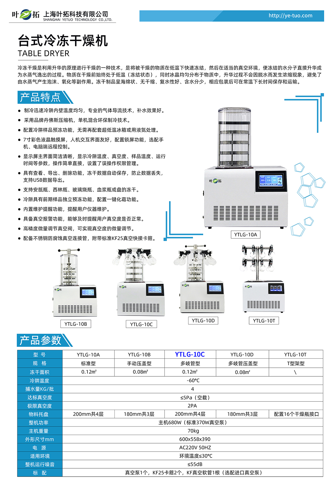 上海葉拓 YTLG-10C 臺式凍干機的產(chǎn)品特點: